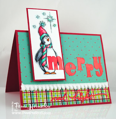 For Stampendous Saturday this week, I chose to post a card that I created for the July holiday catalog. This features this darling Cling Penguin Star, colored with Copic Sketch Markers, and sprinkled with Multi Ultra-Fine Crystal Glitter. If you don't have any other glitter in your sparkle arsenal, you MUST have the Multi UF Crystal Glitter from Stampendous! Perfect, subtle sparkle that allows the image and color to shine through. For this card, I also added the fun Jumbo Merry Class A' Peel stickers in the red mirror finish. I think red and aqua are now my favorite colors for the holidays this year, and this aqua and red dot and matching plaid paper from Pinecone Press works perfectly. Check out what the rest of the team is showing off this week, as well as the Stampendous Impressions blog. Here's the girls that are playing along this week: